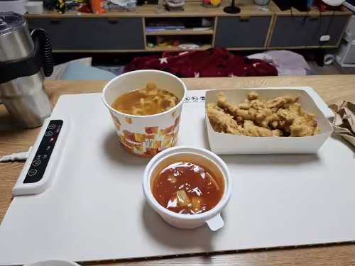 I love this food warming mat! It keeps my food nice and hot even though my room gets pretty cold. The mat heats up very well or at least to the point where its uncomfortable to keep your hand on. It doesn't damage my desk, which is a huge plus. I really wish I had gotten this sooner — it’s been a great little upgrade for my snacks and meals. Definitely recommend if you want to keep your food warm without issues.