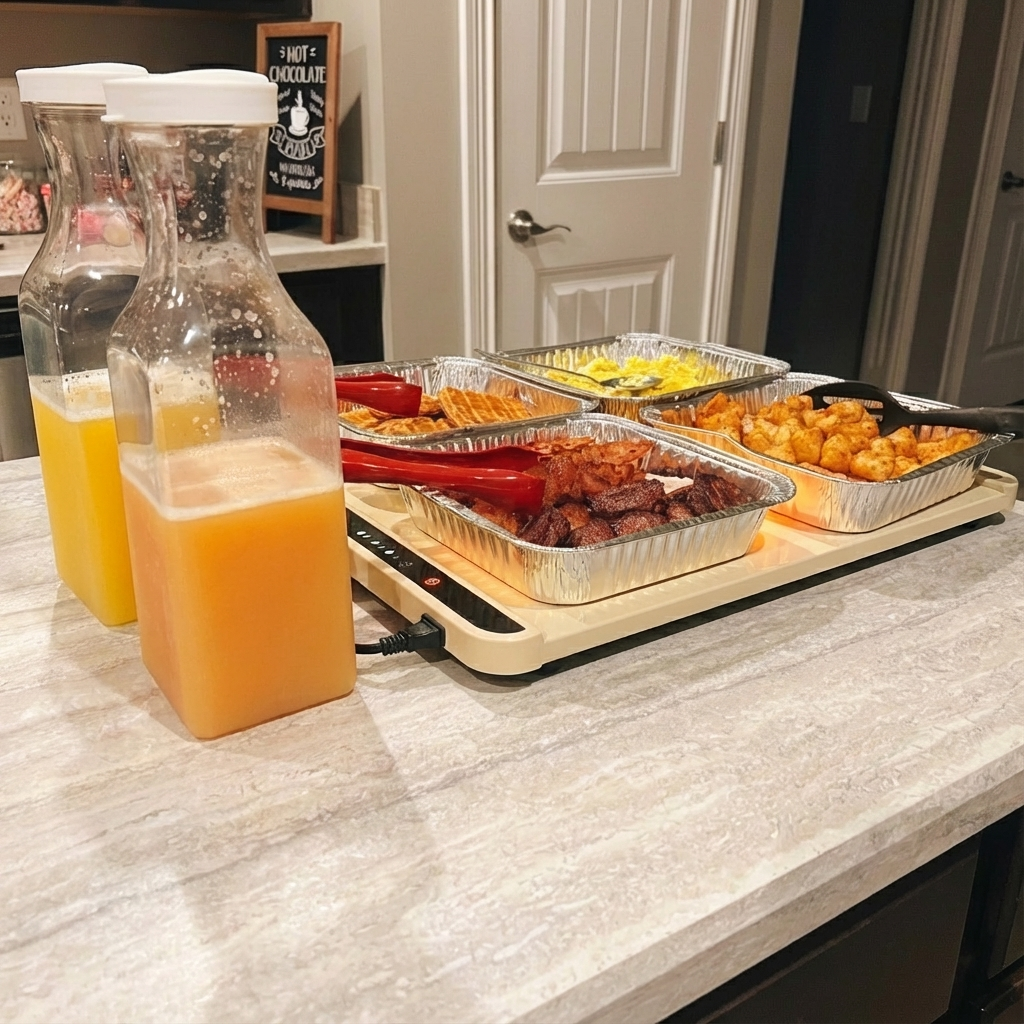 Automatic 1–8 Hour Smart Timer with Auto-Shutoff: Set your desired warming duration and walk away with complete confidence. Built-in safety timer keeps food at serving temperature for extended periods—perfect for slow-serving family meals, game day spreads, religious observances, or all-day holiday feasts. Auto-shutoff prevents overheating and saves energy.