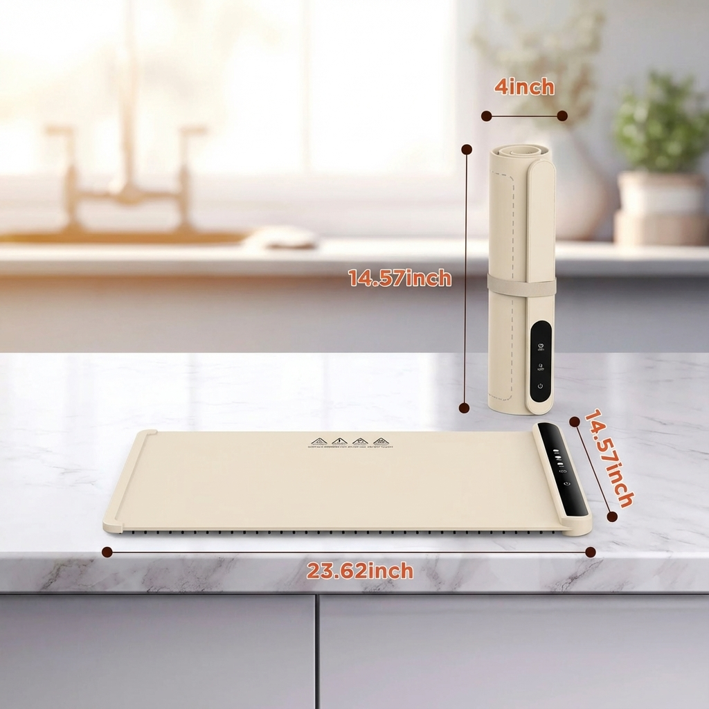 Premium Food-Grade Silicone Construction: Crafted from ultra-durable, BPA-free silicone with a non-slip base, this warming mat withstands daily use while remaining completely safe for direct contact with all dish types, porcelain, glass, stoneware, metal, and even disposable containers. Flexible design rolls up effortlessly for compact storage in any drawer or cabinet.